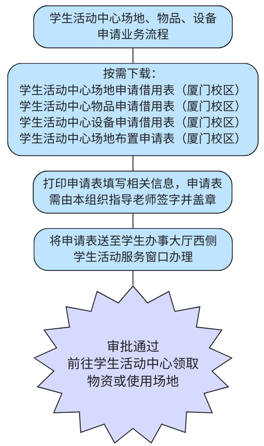 4.活动举办时,场地将直接提供折叠桌20张、塑料椅50张(数量随实际情况而定),如需使用折叠桌、海报板以及更多数量的塑料椅等,请另行填写《学生活动中心物品借用申请表》进行申请。