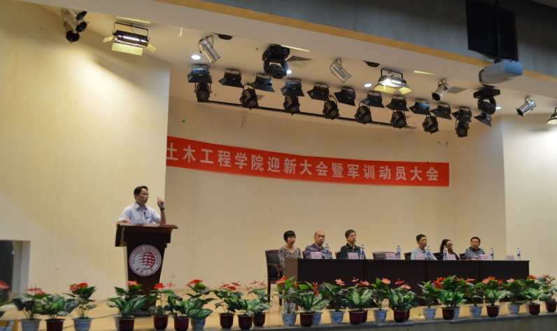 9月21日,土木工程学院2014级迎新大会暨军训动员大会在G204召开。土木工程学院院长郭子雄、党委书记陈捷、副院长周克民、副院长秦旋、土木工程系主任徐玉野、建设管理系主任张泳、市政工程系副主任沈春花及新生班主任出席了本次会议。