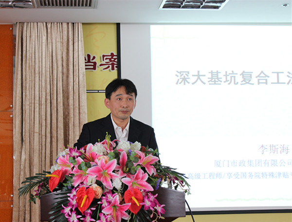 仪式后,李斯海作题为《深大基坑复合工法技术案例——厦门市嘉禾园地下停车库》的学术讲座。他阐述了深基坑工程的概念,并对深基坑支护分类及适用条件进行深入讲解,并以厦门市嘉禾园地下停车库为例,详细分析了地下车库建筑设计、深基坑顺逆作法施工方案设计、基坑土方开挖、基坑安全监测技术,以及工程经济效益分析等内容。此次讲座也作为华侨大学土木工程学院50周年院庆的系列讲座之一。