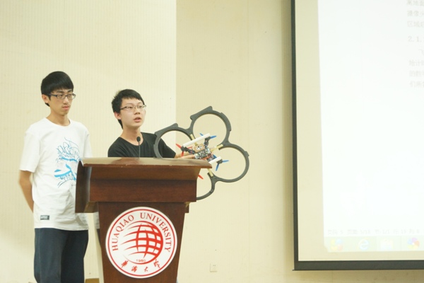 洪家桦、黄周真同学演示四翼飞行器