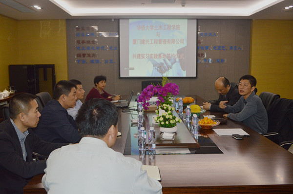 11月13日,土木工程学院党委书记陈捷一行三人走访厦门建兴工程管理有限公司,与厦门建兴工程管理有限公司总经理陈永煌签订共建实习实践基地协议书。土木工程学院工程管理系系主任张泳、厦门建兴工程管理有限公司副总经理陈岩松等共建双方代表共同鉴证了协议的签订和授牌仪式。