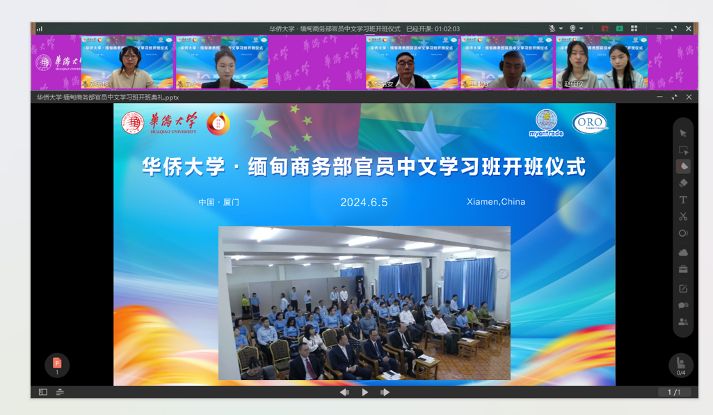 我校预科教育学院负责人感谢缅甸商务部对学校的高度信任并表示,华侨大学是中国商务部等七部委批准设立的国家语言服务出口基地,长期致力于通过语言服务促进中外经贸和文化交流。基地将精心组织课程教学,为缅甸政府官员提供特色商务语言服务课程,促进中文在工作中更好地应用,为中缅两国友好往来架设语言文化桥梁。
